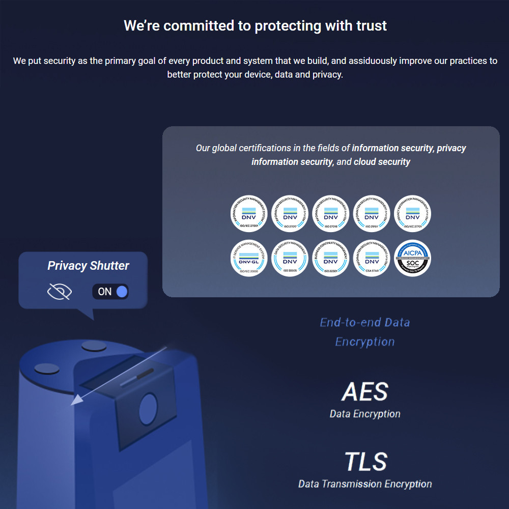 Smart Alarm: PIR motion detection, AI-powered human shape detection , AI-powered pet detection , Loud noise detection