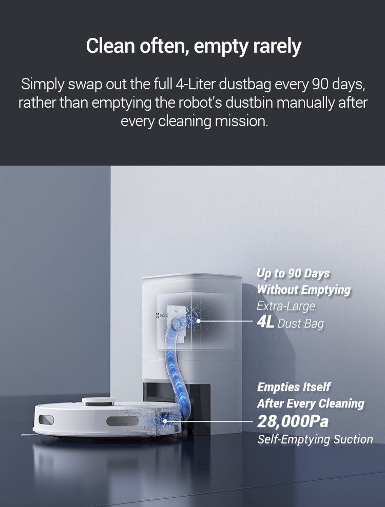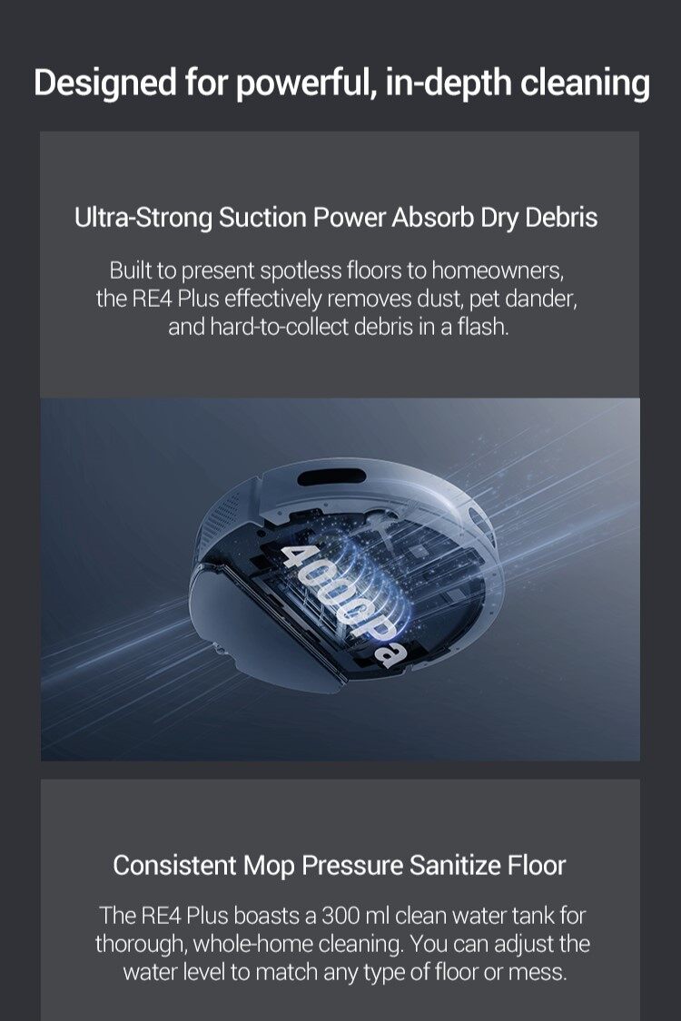 EZVIZ RE4 Plus Robot Vacuum cleaner 4000 Pa Suction Power Automatic Cleaning Self Returning Charging Dock Ezviz Vacuum